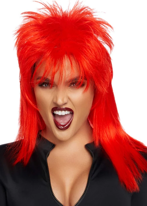 A fantastic quality wig by Leg Avenue, this deluxe unisex red rockstar wig comes in a Ziggy Stardust inspired spiky mullet style that is perfect for a 70s glam rock outfit.