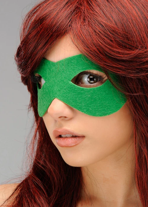 Adult size suitable for men and women superhero style fancy dress accessory bright green soft felt eyemask on elastic.