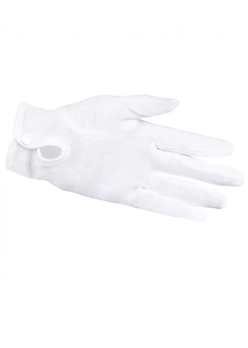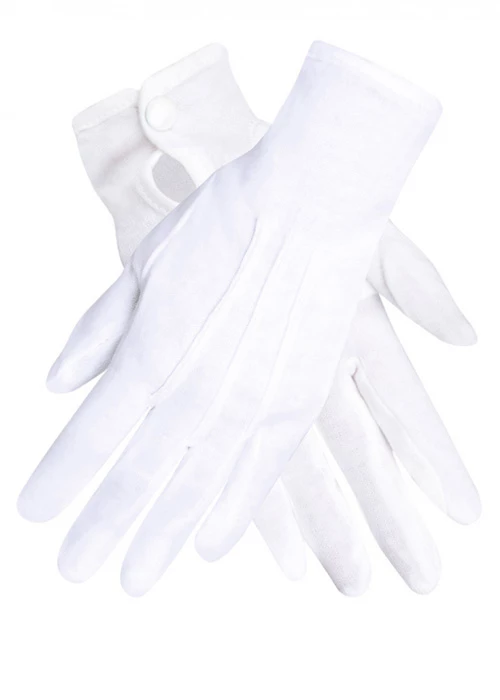 A great value accessory for a wide range of costumes, these adult mens size white wrist length gloves feature seams on the back of the hands and a popper fastening.