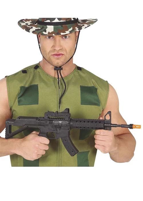 A fantastic accessory for an army or military costume, this black plastic prop assault rifle machine gun measures 57cm.