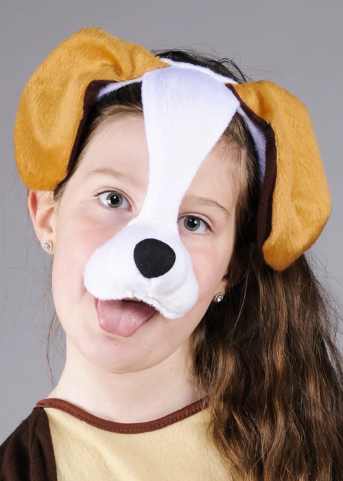 Kids size suitable for boys and girls cute animal fancy dress brown and white dog ears and attached nose on a headband, makes a dog noise when you press the nose.
