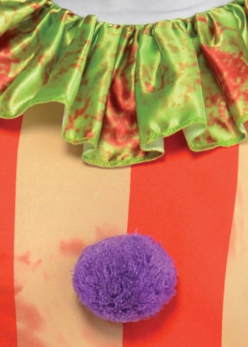 This terrifying kids size killer clown costume is perfect for trick or treating! Includes a 1 piece stretch red and yellow printed clown jumpsuit with ruffled collar and cuffs, pom poms and attached tufts of hair!
