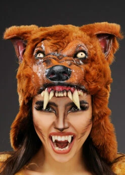 A fantastic deluxe rubber latex and brown fur wolf mask headpiece! This high quality item is one adult size and can be used alongside a variety of costumes.