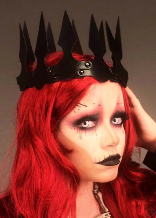 A gorgeous accessory for a wicked evil queen costume, this great quality dramatic spiked gothic crown is made of studded faux leather and is perfect for Halloween.