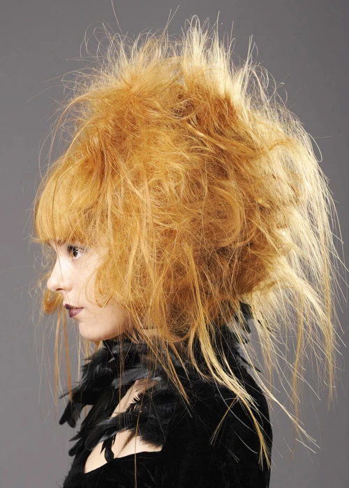 A brilliant zombie style light auburn back combed wig with a fringe! Supplied on an adjustable net to fit different sizes!