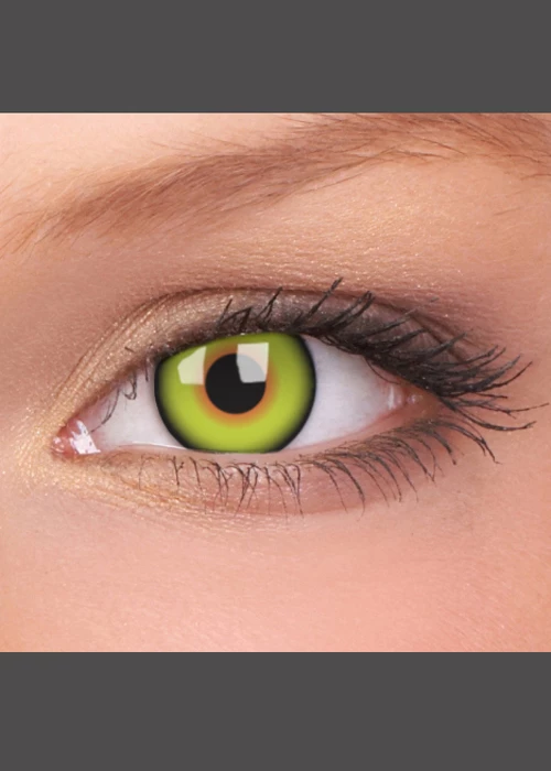 A pack of two green and yellow Mad Hatter design Colourvue cosmetic lenses! Includes two soft ColourVue patented hydrogel daily lenses with high oxygen permeability for comfort.