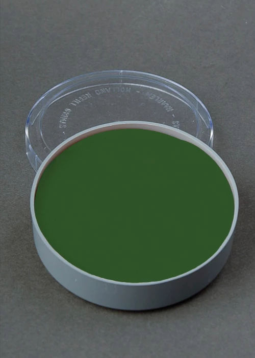 Grimas theatre quality make-up water based facepaint in 404 moss green make-up, comes in a 60ml tub. Can be applied with a damp make-up sponge or brush and can be washed off with warm soapy water.