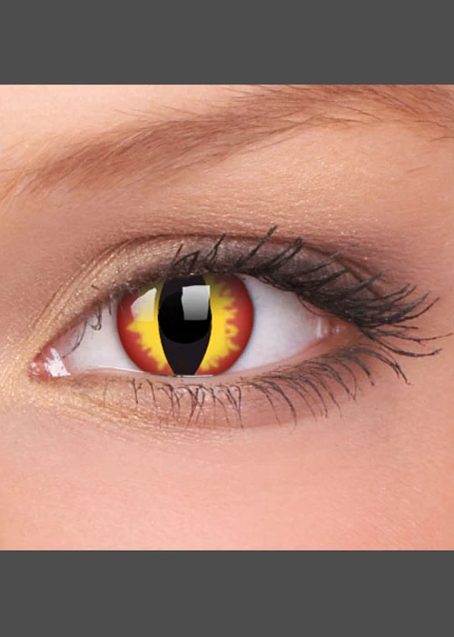 A pack of two unique red and yellow reptile style cosmetic lenses! Pack includes two soft patented hydrogel daily one use lenses with high oxygen permeability for comfort. A great finishing touch to your Halloween costume!