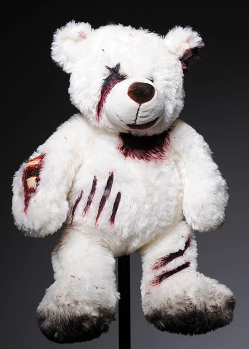 Looking for the ultimate Halloween accessory? Look no further than this unique zombie teddy bear with gruesome wound and fake blood details! PLEASE DO NOT WASH.
