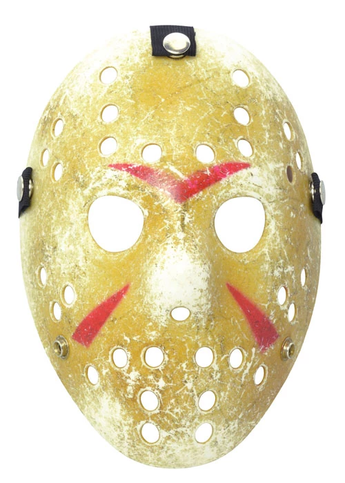 A fantastic accessory for a Friday The 13th inspired outfit, this think plastic painted hockey mask comes on thick elastic straps for easy wear and is ideal for Halloween.