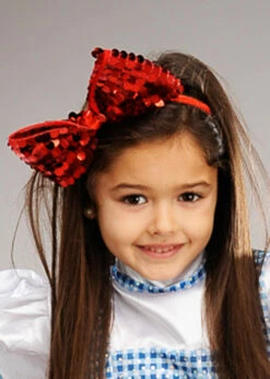 A gorgeous chidrens accessory for a Dorothy from the Wizard of Oz inspired outfit, this red sequin hair bow comes on a headband for easy wear.