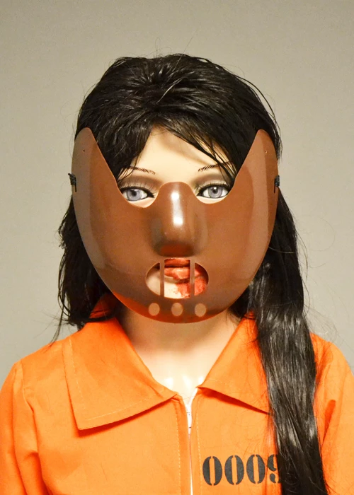A fantastic girls outfit that is great for Halloween inspired by Hannibal Lecter, this childrens size prisoner costume features a bright orange jumpsuit with a printed number detail and zip up the front fastening and a brown plastic hannibal face mask.