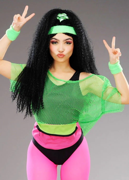 A great fun accessory for a 1980s theme night, this neon green top is made of bright neon green mesh fabric.