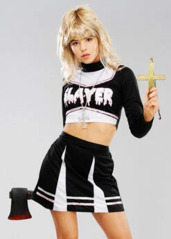 An amazing Halloween style black and red tipped gothic fancy dress wig! Supplied on an elasticated net to fit different sizes.
