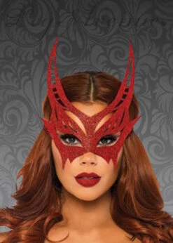 This is a gorgeous accessory from Leg Avenue this sexy devil red glitter eye mask come on an elastic strap.