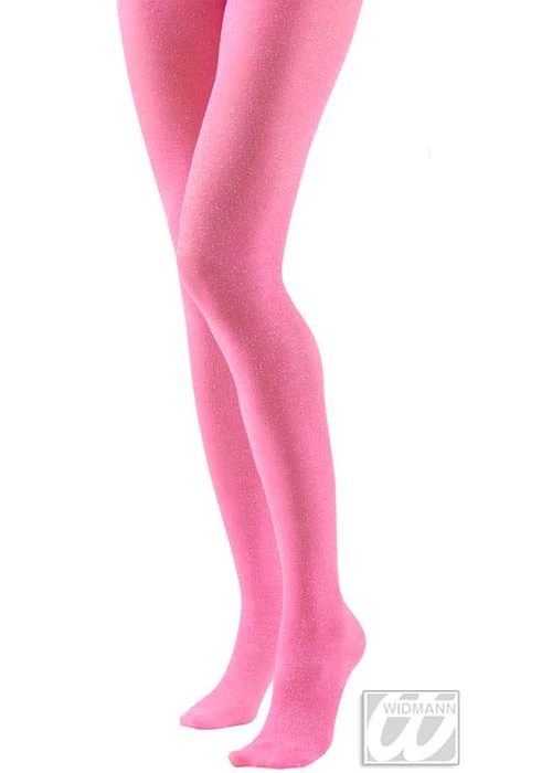Adult plus size womens cute fun girly fancy dress accessory bright pink glitter full footed stretch ladies tights. Comes in a standard adult size to fit a UK dress size 16-20.