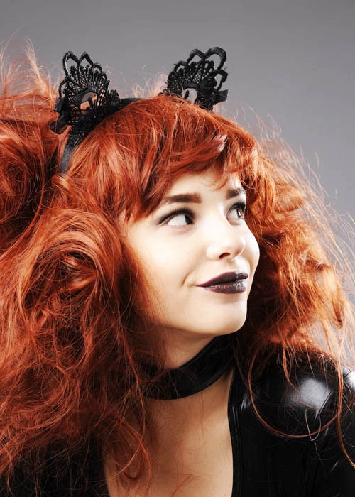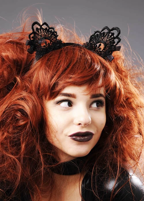 Adult womens size cute fun kitty cat fancy dress accessory Leg Avenue black venice lace cat ears on a headband.