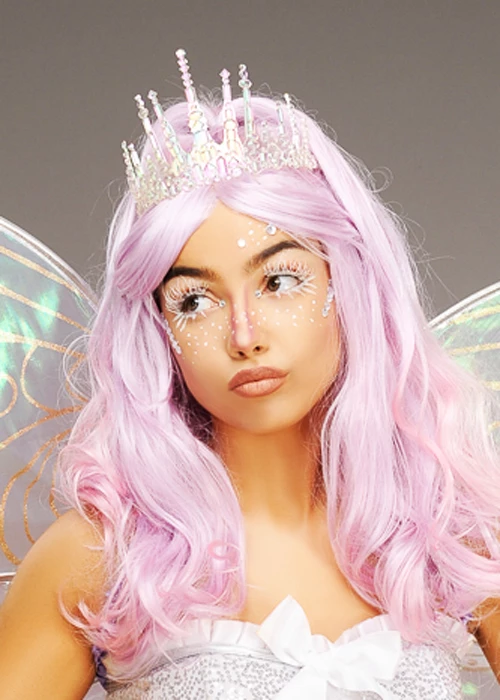 A magical fairy princess headpiece that is suitable for adults and children, this clear iridescent plastic magical crown headpiece comes on hair combs for easy wear.