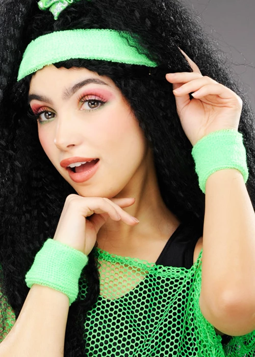 A great sports or 1980s dress up accessory this bright neon green sweatbands set includes a headband and two wristbands.