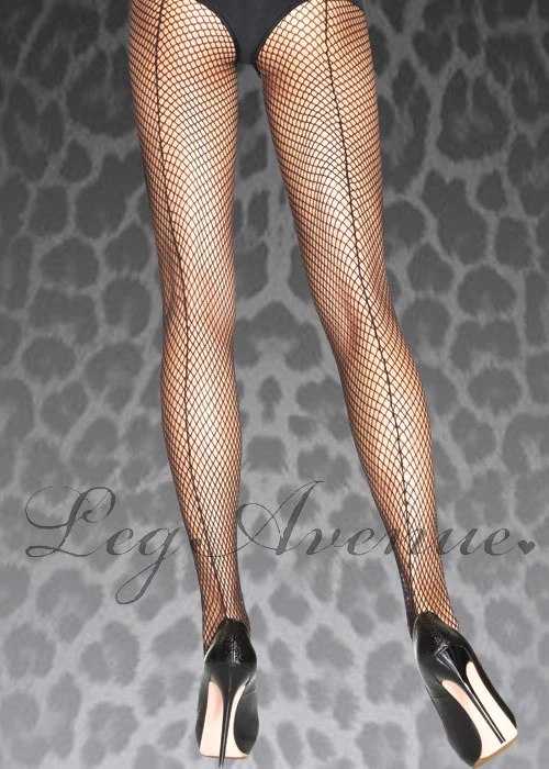 Plus Size Leg Avenue Black Seamed Fishnet Tights