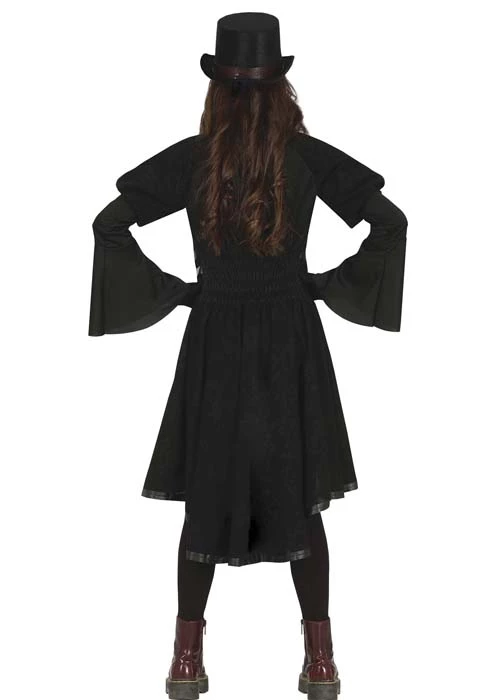 A gorgeous teen girls size gothic Halloween outfit, this Victorian vampire costume includes a gothic black dress with bell sleeves and attached strap details.