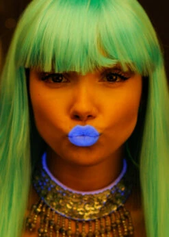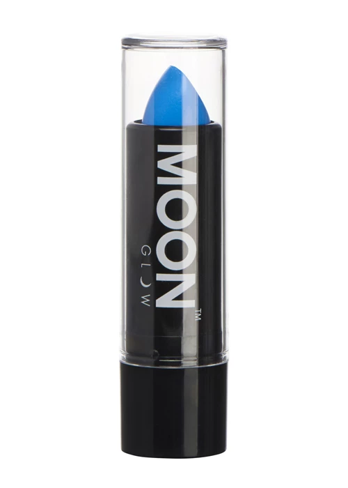 Adult womens cute fun bright glows under UV lights neon raver style fancy dress accessory make-up pastel neon blue lipstick.