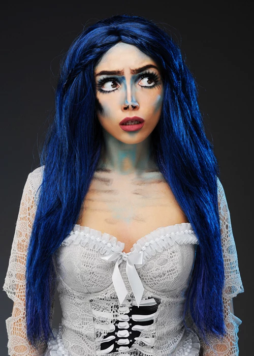 A great quality wig that is perfect for a Corpse Bride inspired look, this rich dark blue long straight wig with small twist details comes supplied on an elasticated net. Ideal for Halloween!