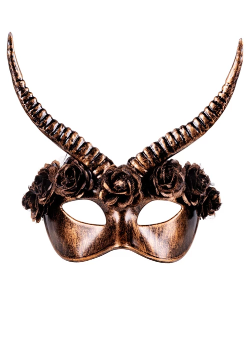 This stunning womens gothic masquerade ball eyemask features a bronze coloured plastic mama legba fantasy design with horns, perfect for Halloween