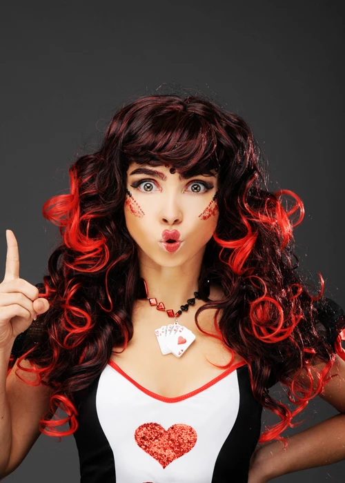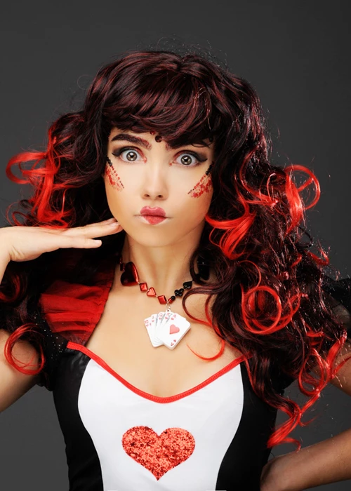 Womens Gothic Queen Of Hearts Red Curly Wig