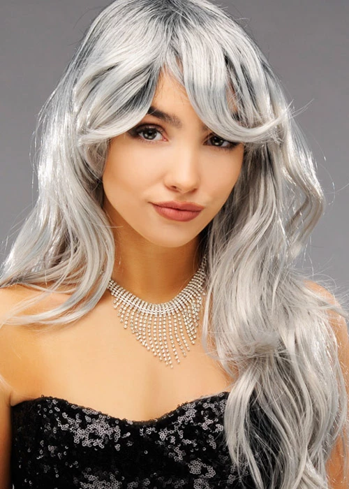 Womens Halloween Long Grey Zombie Bride Wig -PartyPersona Store 44256 long grey wig 01