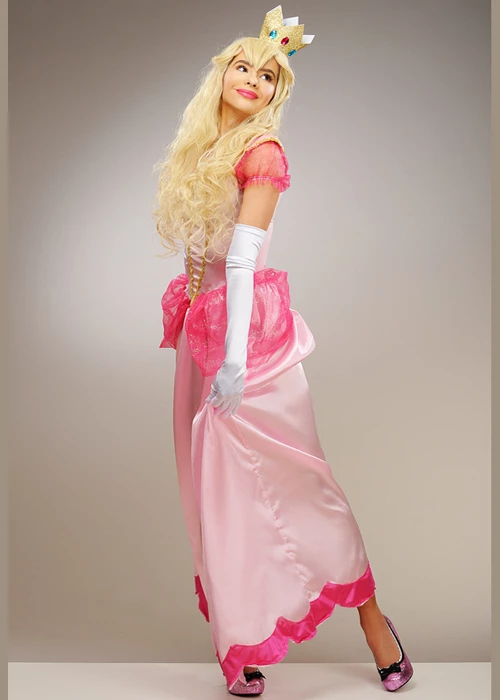 Womens Long Pink Princess Peach Style Costume