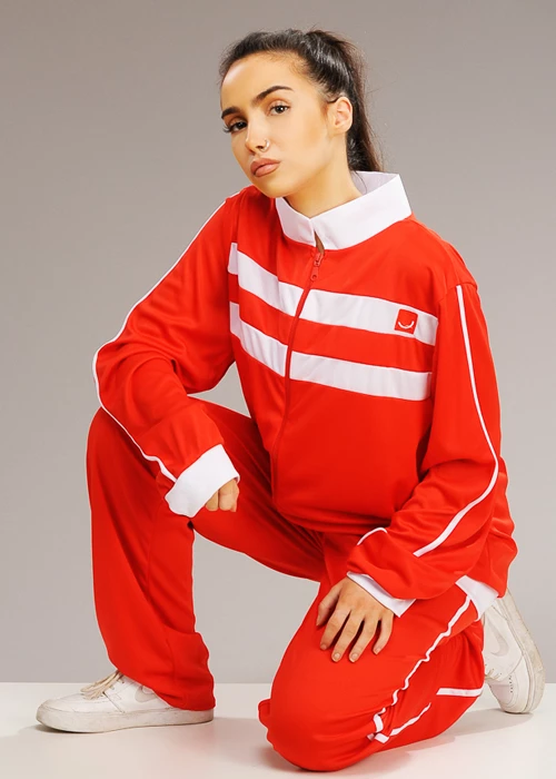 A great value fun outfit that is perfect for an 90s theme night inspired by Sporty Spice, this costume includes a long sleeved red tracksuit jacket with white stripes and matching red trousers.