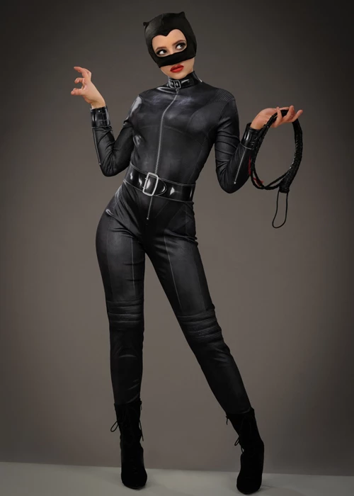 A fantastic Catwoman outfit from The Batman movie, this Selina Kyle costume includes a printed stretch jumpsuit, fabric belt and mask.